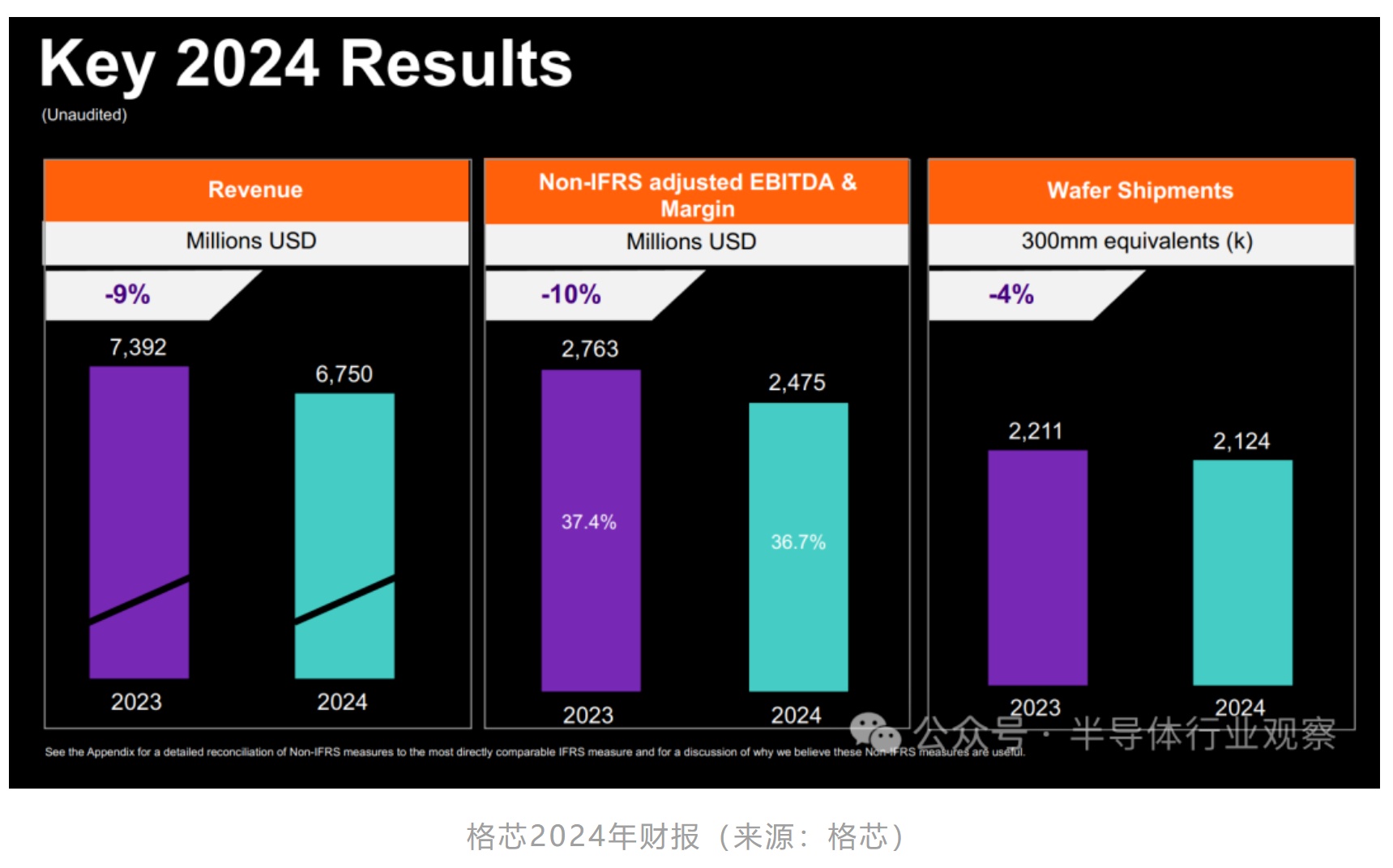 作为同专注于成熟节点的格芯而言,挑战同样不容忽视。格芯2024年收入预计为67.50亿美元,同比下降9%;毛利率为24.5%,净亏损2.62亿美元,远低于2023年10.18亿美元的净收入。展望2025年第一季度,格芯预计收入将在15.5亿至16亿美元之间,毛利率预期为22.1%。