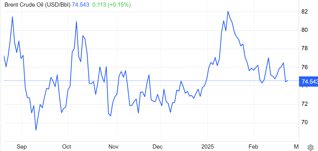 最新的国家油价走势方面,周一,国际原油价格基准——布伦特原油期货价格跌至每桶 74.2 美元左右,接近两个月低点,维持着下跌轨迹,主要因市场预期库尔德斯坦地区的运输管道将恢复原油出口。伊拉克石油部宣布,已完成所有必要程序,旨在恢复通过伊拉克-土耳其管道出口原油,这表明近两年来一直扰乱该地区原油流通的争端可能得到解决。大宗商品交易员们还继续关注俄罗斯-乌克兰战争结束谈判的进展情况,因为和平协议可能导致美国对俄罗斯原油的制裁大幅放松,从而可能增加全球供应。