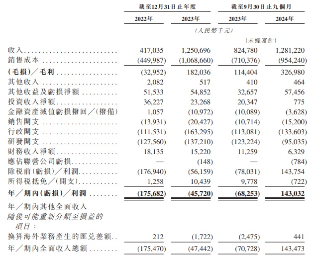 财务方面,于2022年度、2023年度及2024年截至9月30日止九个月,天岳先进实现收入分别约为4.17亿元、12.51亿元、12.81亿元人民币;同期,公司实现利润分别为-1.76亿元、-4572万元、1.43亿人民币。