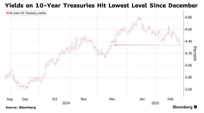 由于特朗普政府政策的不确定性影响了商业预期,市场越来越相信美国经济正在走弱,降息将恢复。上周五公布的数据显示,2 月份服务业两年来首次出现萎缩,周一两年期国债拍卖需求强劲。
