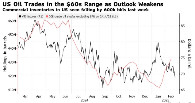 智通财经获悉,纽约商品交易所原油期货在回落至每桶60美元区间后持稳,因美国经济前景恶化威胁到能源需求前景,并促使投资者避开包括原油在内的风险资产。WTI原油周二跌逾2%,收于每桶69美元上方,为去年12月中旬以来的最低收盘价,布伦特原油收于每桶73美元附近。自2021年以来,美国消费者信心指数下跌幅度最大,引发了对特朗普总统关税行动的担忧。