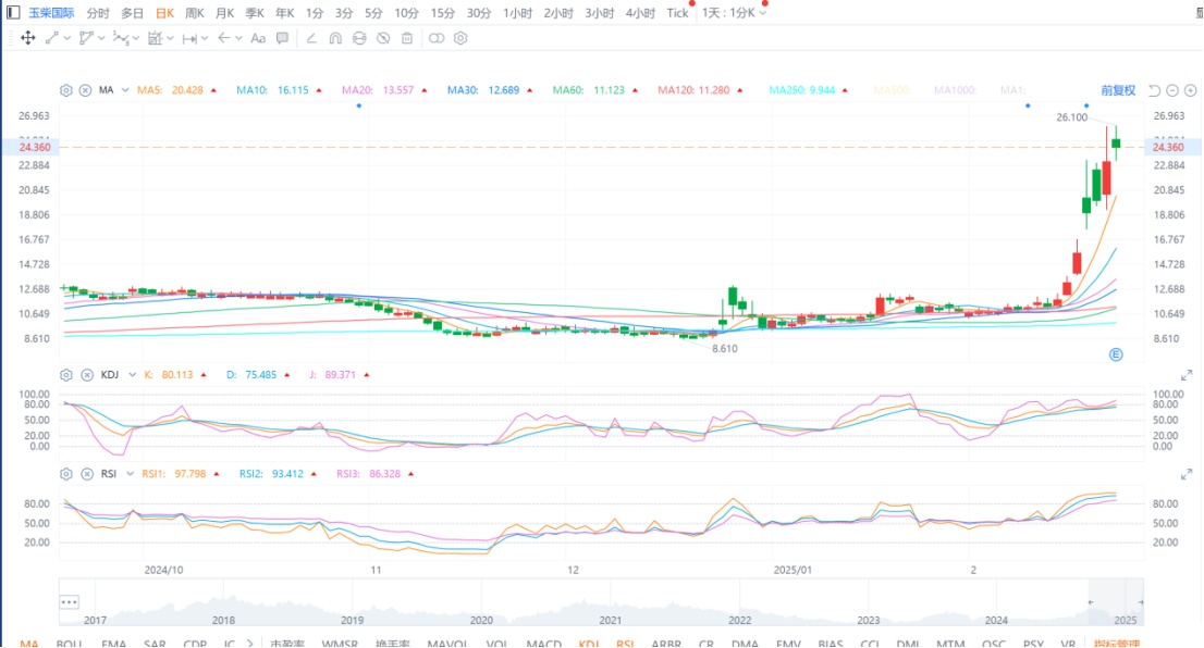 智通财经APP观察到,截至2月25日,玉柴国际在近半个月内股价区间最高涨幅高达120.81%。