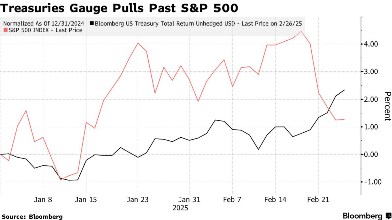 今年迄今为止,彭博社衡量美国国债收益率的指标已上涨2.3%,超过标普500指数1.3%的涨幅。2月份MLIV Pulse调查的大多数受访者预测,未来一个月美国国债收益率将超过美国股市。