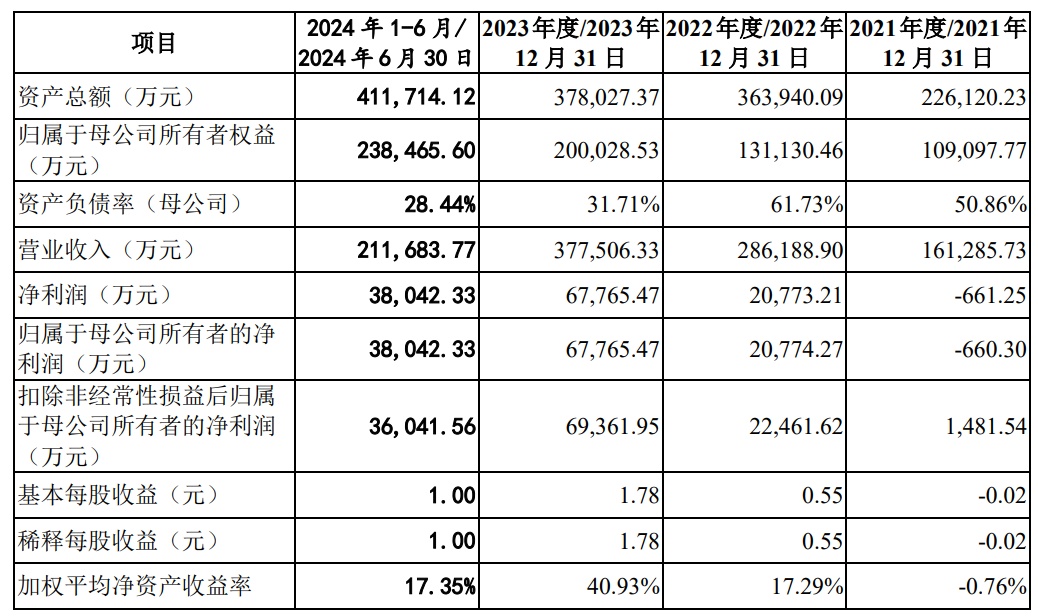 财务方面,于2021年度、2022年度及2023年度,公司实现营业收入分别约为16.13亿元、28.62亿元、37.75亿元。公司净利润分别约为-661.25万元、2.08亿元、6.78亿元人民币。