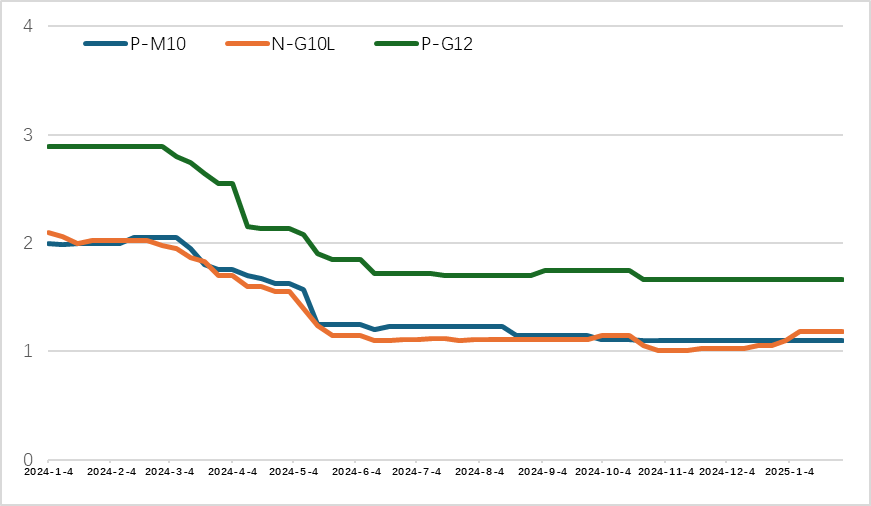 多晶硅方面,2025年2月多晶硅市场价格持稳,未见明显涨势。n型复投料成交月度均价为4.17万元/吨;n型颗粒硅月度成交均价3.90万元/吨。