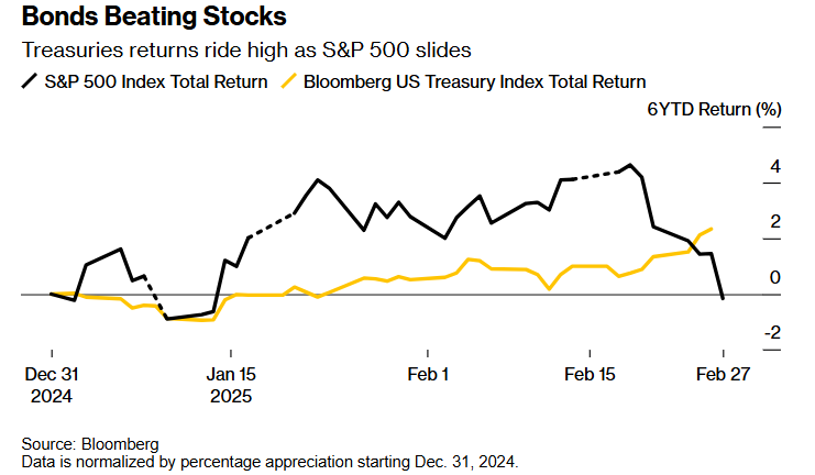 智通财经APP获悉,整个亚洲新兴市场的股市在周五可谓被彻底卷入全球股市大抛售浪潮,随着美国总统特朗普最新关税威胁引发风险资产暴跌,泰国和印尼股市甚至在暴跌之后直接陷入所谓的“熊市行情”,恒生科技指数暴跌超5%。在全球股市,尤其是美股近日持续下跌之际,偏向避险策略的投资组合近日明显跑赢资产比例偏向科技股、加密货币股等高风险偏好的投资组合,凸显出“避险主义”在特朗普关税可能引发新一轮全球贸易战的宏观预期之下,资金倾向涌入避险类资产,力争在规避风险的同时斩获超额收益。