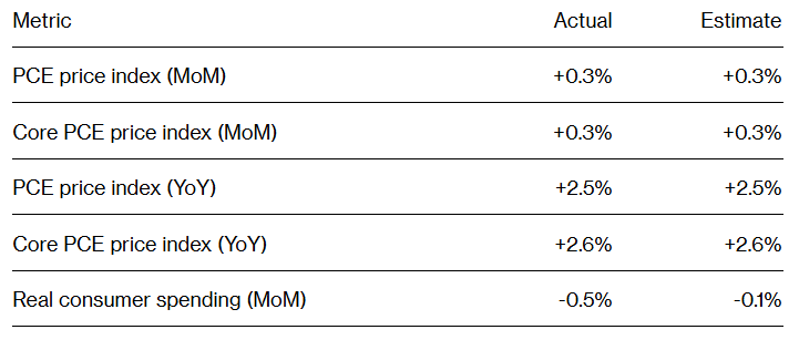 最新公布的PCE数据报告显示,消费支出意外下降是由汽车购买量,以及耐用品商品购买量下降所导致,但是随着数据显示服务支出放缓,可能将进一步催化市场对美国经济韧性的担忧情绪升温,毕竟消费项目占据美国GDP高达80%-90%的比例。PCE报告的其他数据显示,包含能源与食品的整体PCE同比增长2.5%与经济学家预期一致,前值为2.6%,显示出整体PCE小幅下滑;整体PCE环比增长0.3%,与市场预期以及前值一致。