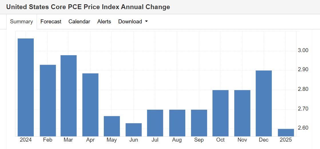 美国经济分析局周五公布的PCE数据报告还显示,与去年同期相比,核心PCE指标同比上涨2.6%,与市场预期一致,创下2021年初以来的最小年度涨幅,同时12月的核心PCE同比增幅由2.8%上修至2.9%,显示出同比基准下的美国核心PCE指标有所降温。