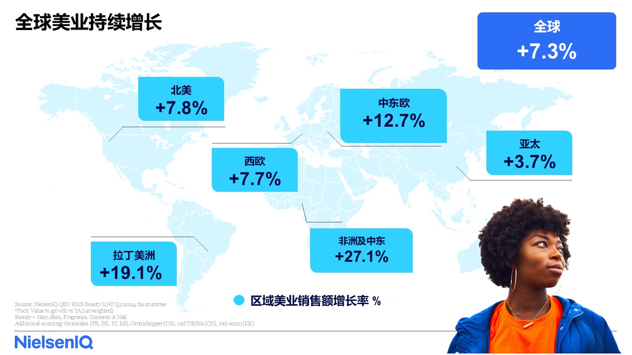 (NIQ)透露,全球美妆个护产业的价值较去年同期实现了7.3%的稳健成长。拉丁美洲以及非洲-中东地区引领成长,增幅最为显著,而北美和西欧也分别展现出强劲的成长率,达到7.8%和7.7%。在亚太地区,韩国、印度、泰国、新加坡和纽西兰正成为主要市场,推动了整体价值的成长。通膨是这一全球成长的主要驱动力,但收入的增加以及新消费者的涌入也为成长提供了支撑。