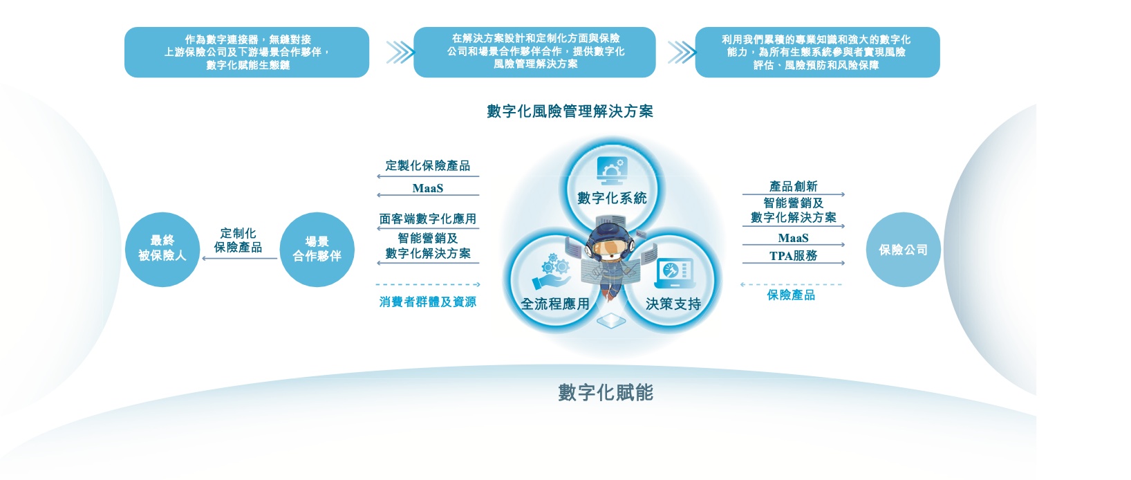 从业务模式来看,作为保险公司、场景合作伙伴及终端消费者之间的数字连接器,公司在解决方案设计及定制方面与上游保险公司及下游场景合作伙伴紧密合作,为所有生态系统参与者提供数字化风险管理解决方案。目前公司的产品已涵盖包括出行、健康及公共服务在内的九种生态圈。