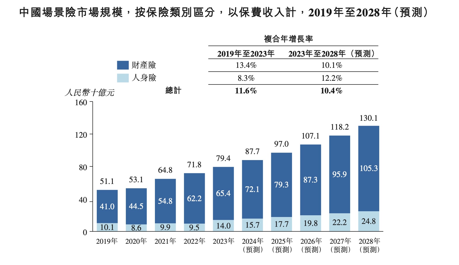 从行业来看,近年来,中国的场景险市场经历持续增长,市场规模(就保费收入而言)从2019年的511亿元增长至2023年的794亿元,期间复合增长率为11.6%。预计于2028年将进一步达到1301亿元,其中2023 年至2028年的复合年增长率为10.4%。