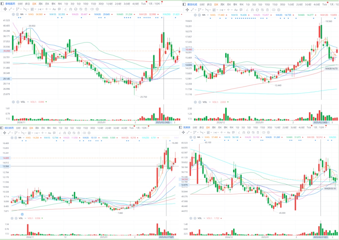 一般来说,消息炒作推动下的市场情绪涨的快退的也快。2月24日和25日,康龙化成、泰格医药持续震荡低走。相较之下,昭衍新药在24日和25日连续两天缩量,加速场内分歧转一致,25日收涨3.31%也是超出市场预期,因此在次日获得市场情绪溢价,股价再次收涨11.21%,拉开了与同业公司股价的差距。