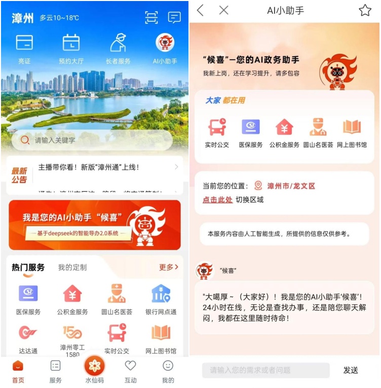 基于神旗数码的一体化解决方案能力和其此前为福建省漳州市打造的政务服务APP漳州通,神旗数码在漳州迅速完成了DeepSeekR1全尺寸671B(满血版)模型的本地化部署,构建了本地化深度融合政务服务场景的专业模型,并以此为基础,开发上线了福建首名AI公务员“候喜”。