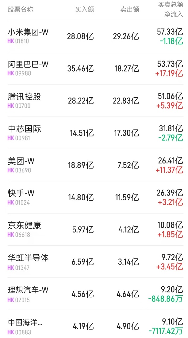 阿里巴巴-W(09988)获净买入35.8亿港元。消息面上,大和表示,春节期间中国人工智能平台DeepSeek取得突破后,人工智能推理需求急增已导致云端供应短缺。由于阿里通过积极的资本开支投资建立云端运算容量,故认为阿里最有能力成为云端运算市场的领导者,并从公有云消费的大幅增长中受益。因此,该行将阿里2026财年的云端收入同比增长预测上调至20%;资本开支预测上调至1260亿元人民币至于2027财年的资本开支预测上调至1390亿元。