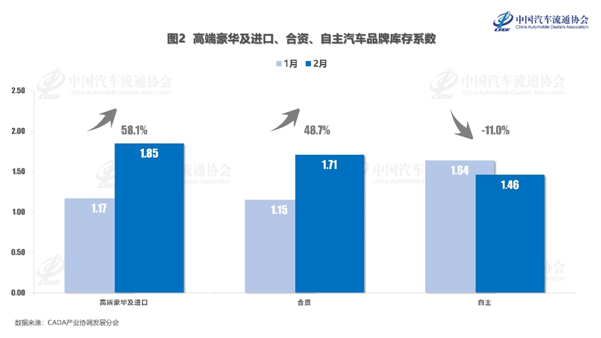 二、高端豪华及进口、合资库存系数环比上涨,自主品牌环比下降