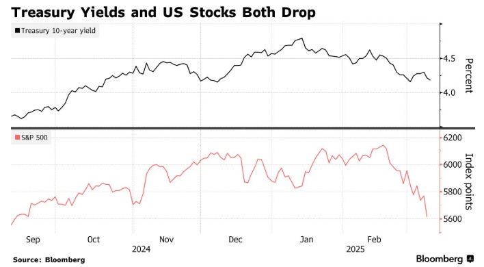 特朗普不可预测的关税政策也刺激了避险情绪。特朗普本月对大多数加拿大和墨西哥产品征收25%的关税,但由于美国股市暴跌,特朗普推迟了全面实施关税。美国政府效率部的行动也导致数千名政府雇员和承包商失业,这可能会给经济增长带来阻力。