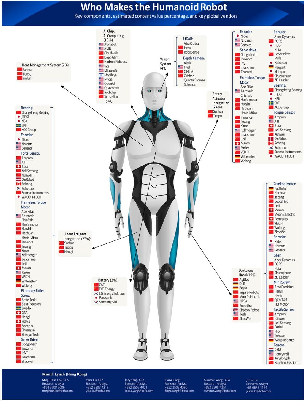 智通财经APP获悉,近日,全球知名金融机构美银证券发布大中华区行业报告《Who Makes the Humanoid Robot?(谁制造了人形机器人?)》(以下简称“报告”)。RoboSense速腾聚创(02498)凭借在机器人视觉领域的业务进展和技术积累,入选《报告》梳理的全球人形机器人视觉系统核心供应商。