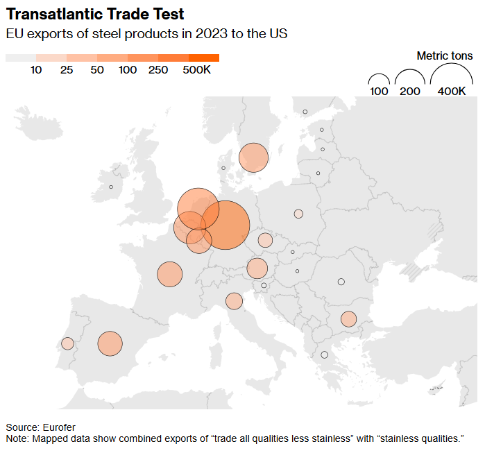 对于欧洲来说,新的关税规模几乎是特朗普第一任期内征收的类似关税的四倍。当时,美国以国家安全担忧为由,对欧盟近70亿美元的金属出口征收关税。