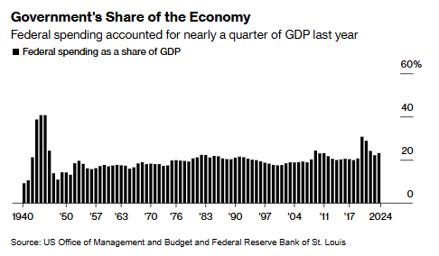 目前,联邦支出约占美国GDP的四分之一,因此,即使削减幅度仅为马斯克所预期的一小部分,也可能在经济已经因放缓风险而紧张不安之际对经济造成冲击。