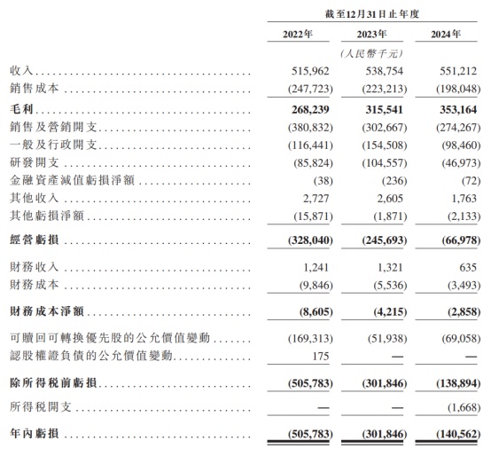 根据招股书披露,于2022年、2023年以及2024年,慧算账收入分别约为5.16亿元、5.39亿元、5.51亿元(单位为人民币,下同),2022年至2024年的复合年增长率为3.4%;毛利分别为2.68亿元、3.16亿元和3.53亿元,2022年至2024年的复合年增长率为14.8%;年内亏损分别约为5.06亿元、3.02亿元、1.41亿元。