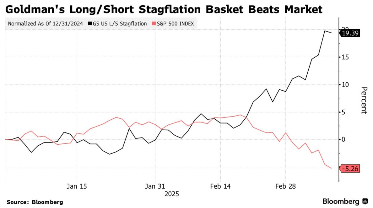 智通财经APP获悉,随着美国总统特朗普时断时续的关税战争引发的股市暴跌进入第三周,投资者几乎没有赢家策略可以避险。不过,有一个策略现在正在飙升:押注那些在经济陷入滞胀时表现良好的股票。
