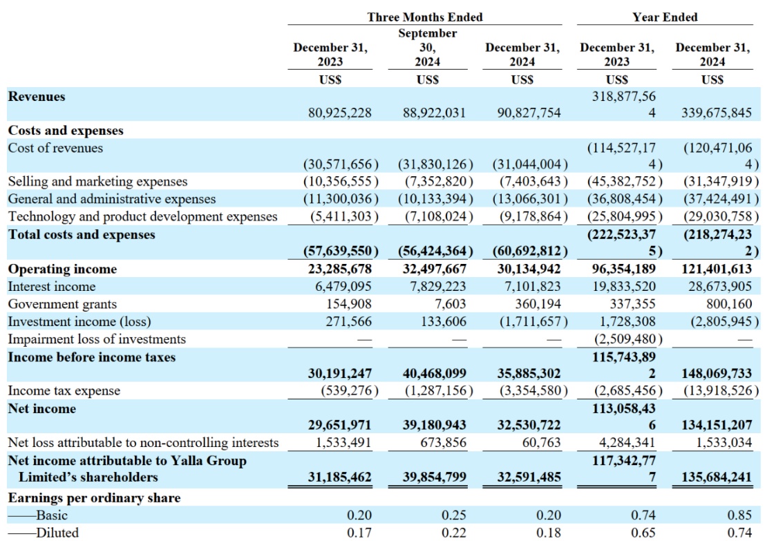 智通财经APP了解到,2024年,雅乐科技年营收为3.40亿美元,其中社交服务收入为2.25亿美元,游戏服务收入为1.14亿美元。利润端方面,公司当期净利为1.34亿美元,同比增长18.7%,净利润率为39.5%;经调整净利为1.49亿美元,较上年同期的1.31亿美元增长13.6%,对应净利润率则为43.8%。
