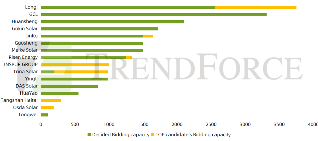 2025年1-2月,协鑫集成、隆基、环晟已定标规模较多,分别为3.3GW、2.6GW、2.1GW;隆基、浪潮集团、天合光能第一中标候选人中标规模居多,分别为1.2GW、1GW、0.78GW。