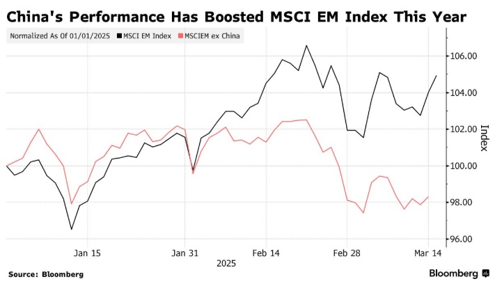 最新统计数据显示,MSCI新兴市场指数在3月份单月上涨近3%,创下自去年9月以来的最大月度涨幅的概率越来越大,主要受到中国港股与A股市场核心科技与消费类股票标的的强劲上涨所推动。