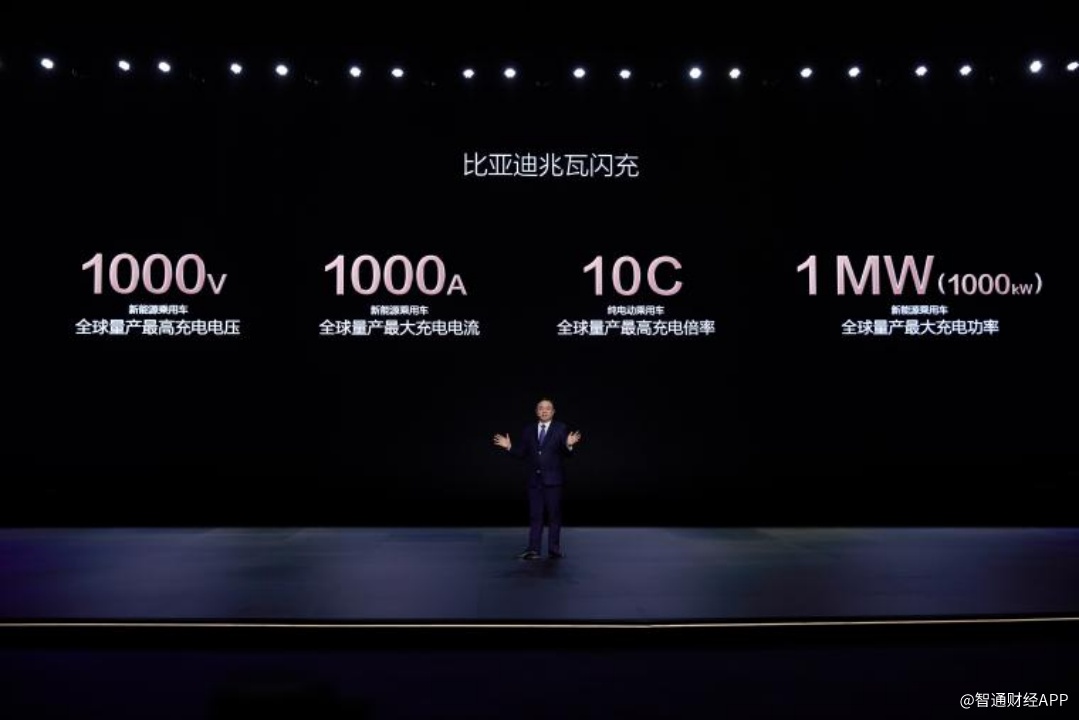 比亚迪此次还正式发布“闪充电池”,从电池正极到负极,全方位构建起超高速离子通道,将电池内阻降低50%,充电电流做到1000A,充电倍率达到10C,都是全球之最。
