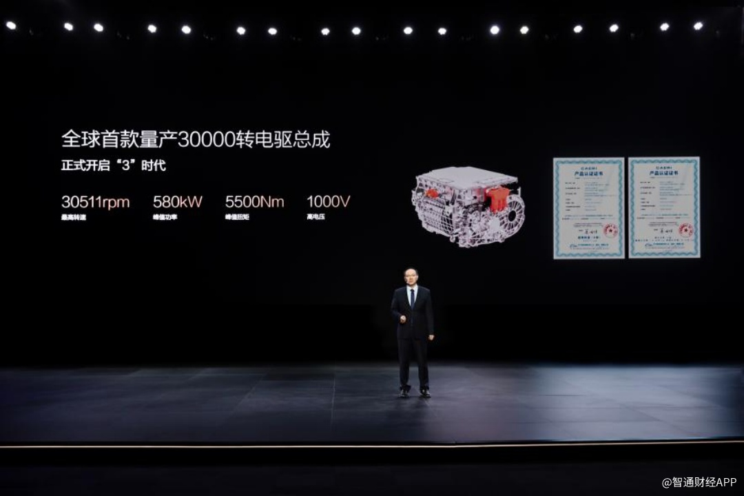 本次发布会,比亚迪还发布了全球首款量产3万转电机。比亚迪高级副总裁罗红斌在发布会上表示:3万转电机不仅实现了车速的大幅提升,还可以大幅度降低电机重量,缩小电机体积,提高功率密度,重新定义巅峰性能,引领电驱总成进入 “3” 时代。
