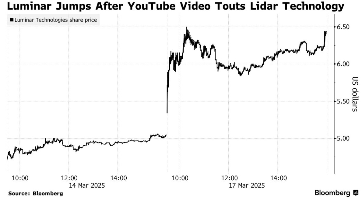 尽管周一大涨,但Luminar股价仍较去年7月份创下的一年高点下跌了约80%。该公司将在3月20日股市收盘后公布第四季度业绩。