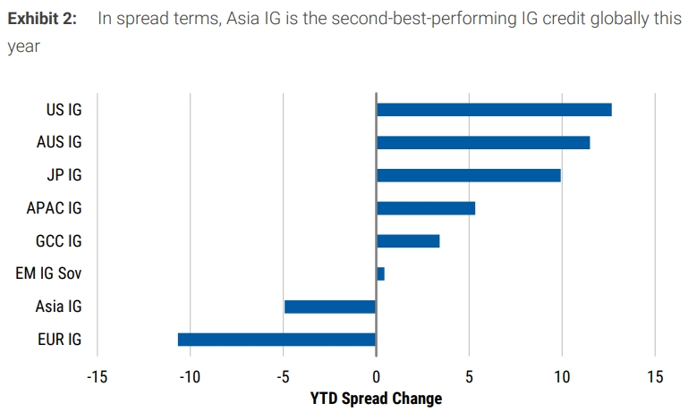 尽管全球投资级信用债市场普遍承压,但亚洲投资级信用债(Asia Investment Grade Bond)的表现却格外坚挺。