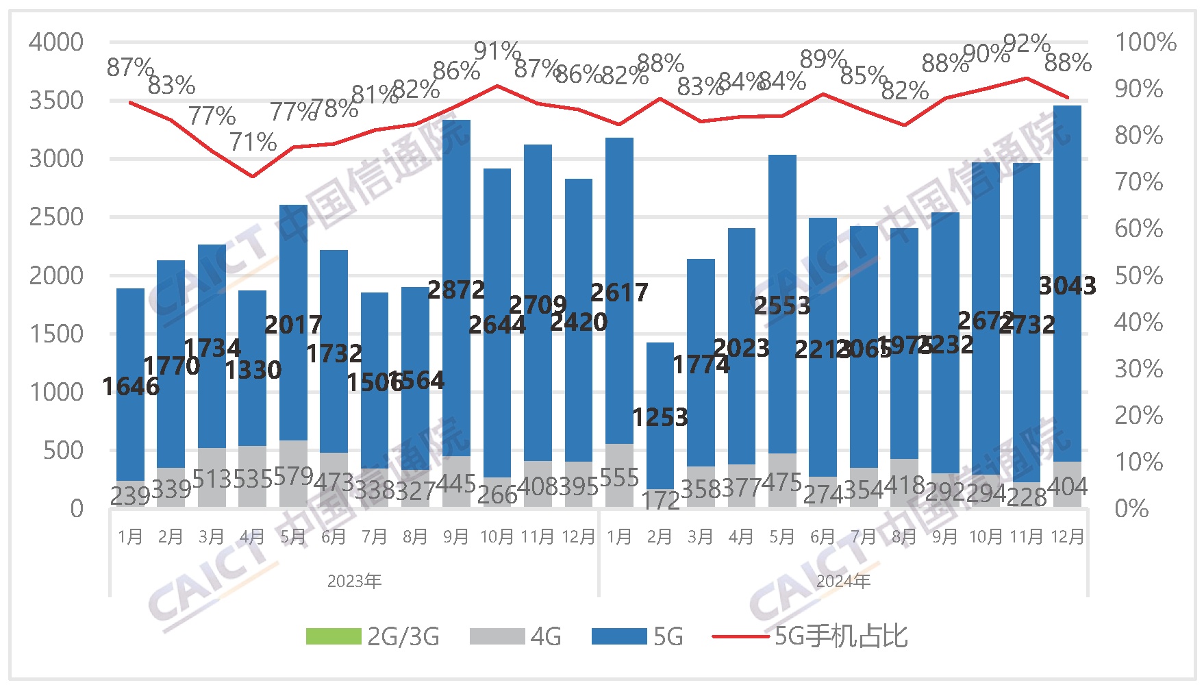 而在中国市场,得益于Gen AI、屏幕以及电池续航等技术创新带来的换机需求,2024 年全年中国智能手机市场出货量激增。中国信通院数据显示,2024年全年国内手机市场出货量为3.14亿部,同比增长8.7%;12月出货量3452.8万部,同比增长22.1%。