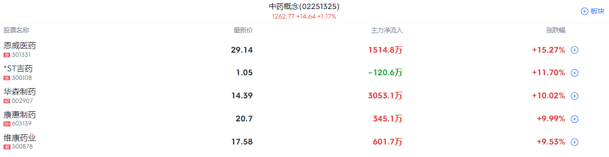 1、中药板块走强
