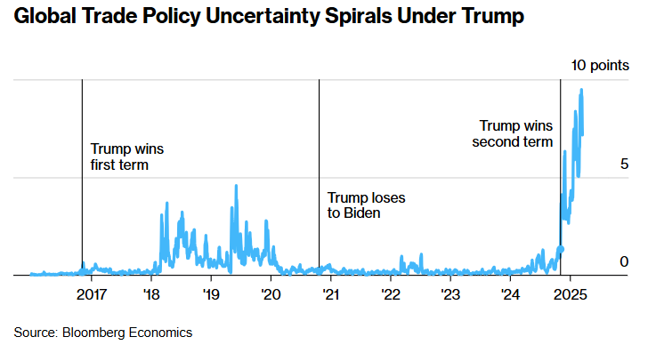 全球贸易政策不确定性在特朗普主导之下螺旋上升