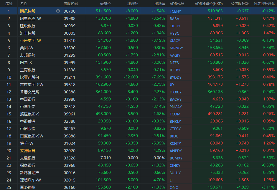 智通财经APP获悉,周五美股三大股指悉数上涨,恒生指数ADR下跌,按比例计算,收报23678.64,较香港收市下跌11.08点或0.05%。