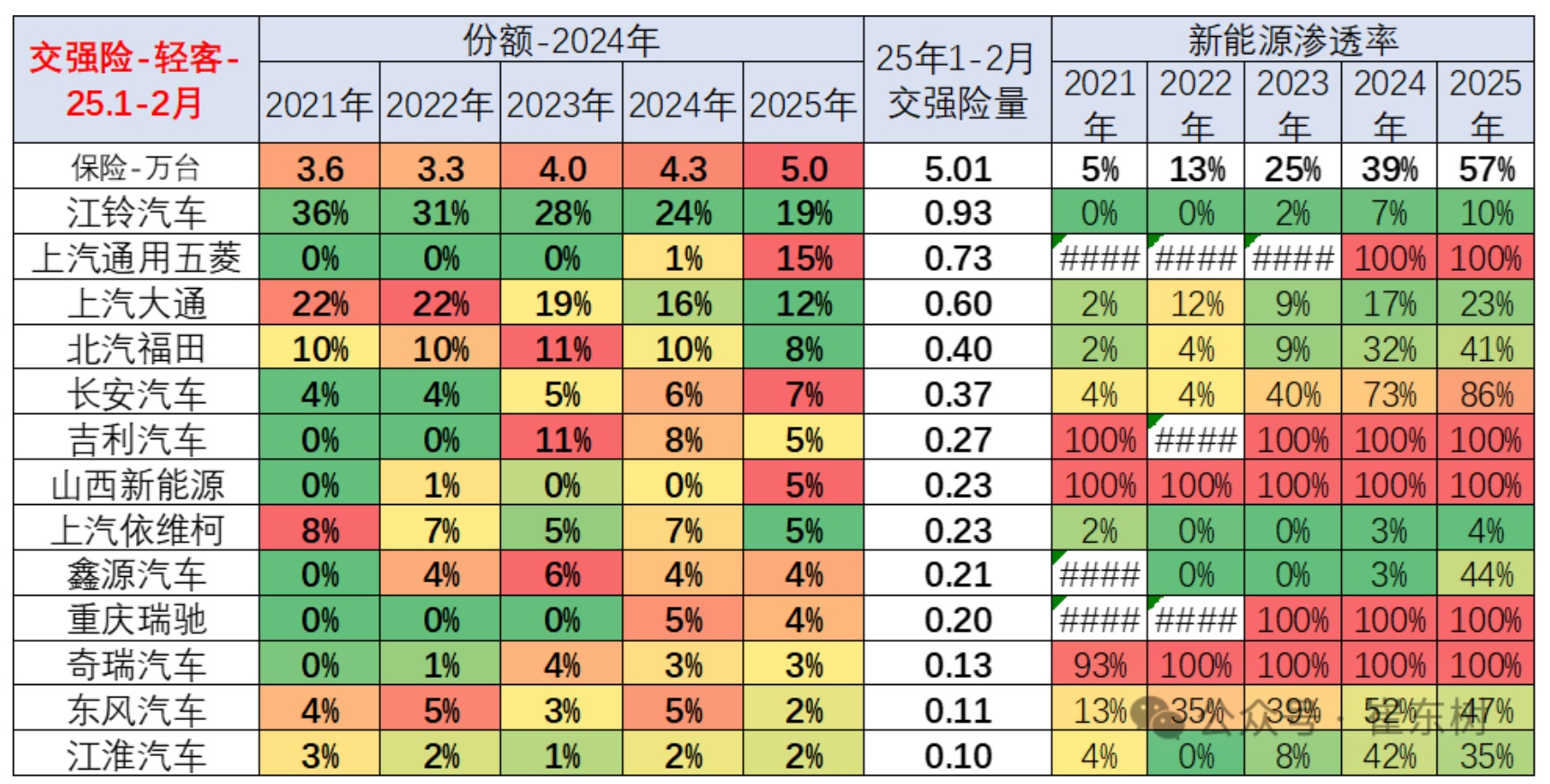 2025年1-2月份新能源渗透率达到19%,相对于去年1-2月的12%,提升7个百分点,表现相对较强。