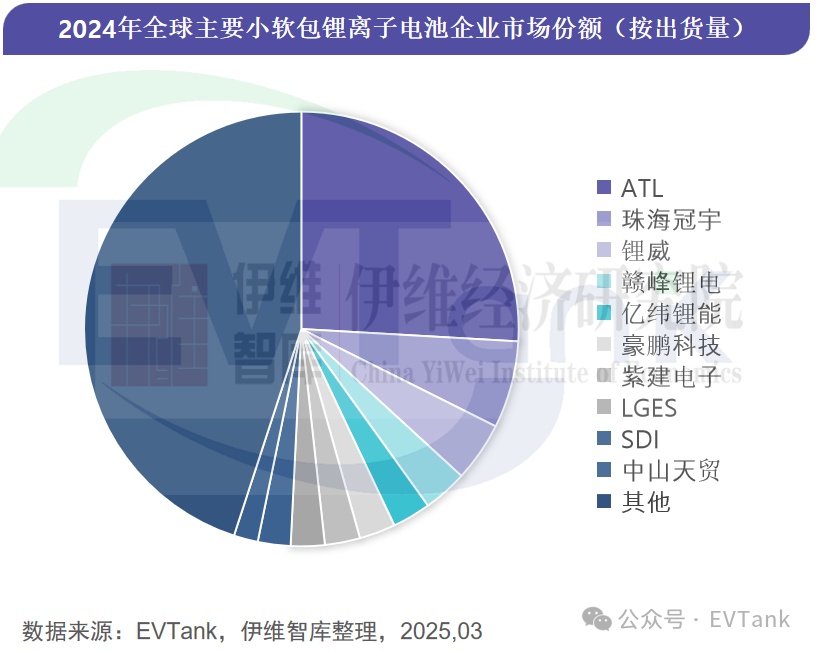 从竞争格局来看,EVTank发布的《中国小软包锂离子电池行业发展白皮书(2025年)》显示,ATL以超过25%的市场份额排名全球第一,出货量排名全球前十的企业还包括珠海冠宇、锂威、赣锋锂电、亿纬锂能、豪鹏科技、紫建电子、LGES、SDI和中山天贸。