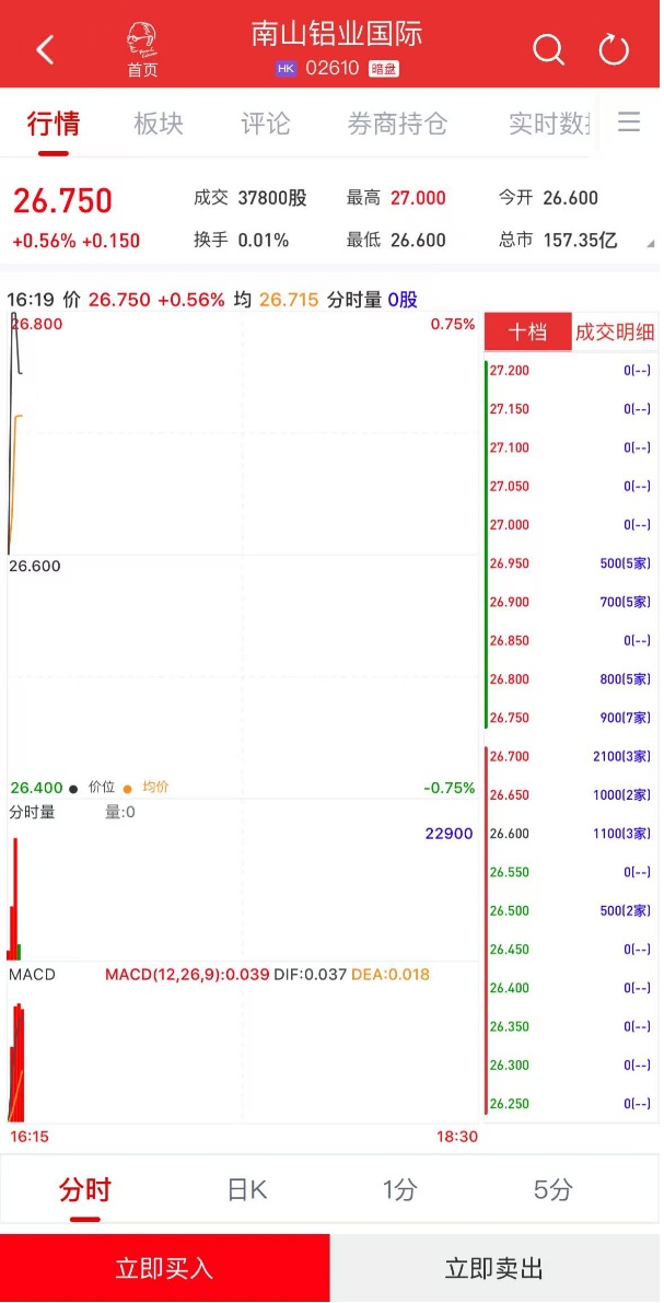 智通财经APP获悉,南山铝业国际(02610)将于3月25日(星期二)在香港挂牌。截至发稿,利弗莫尔证券暗盘交易显示报价26.75港元,较招股价26.6港元上涨0.56%,每手100股,不计手续费,每手赚15港元。