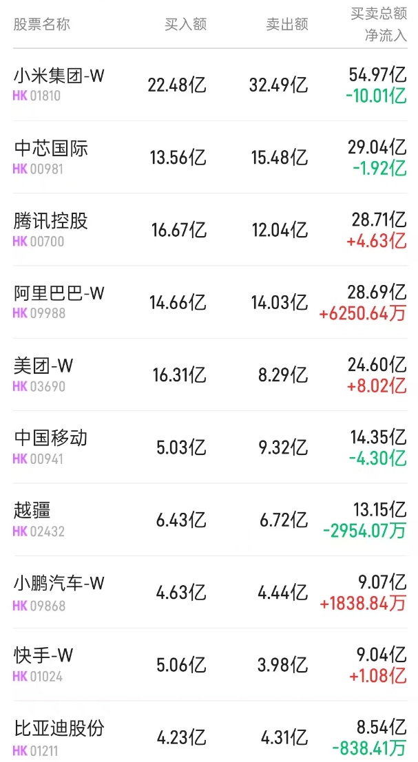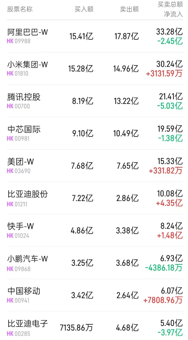 此外,比亚迪电子(00285)、阿里巴巴-W(09988)、腾讯(00700)分别遭净卖出3.96亿、1.82亿、4042万港元。