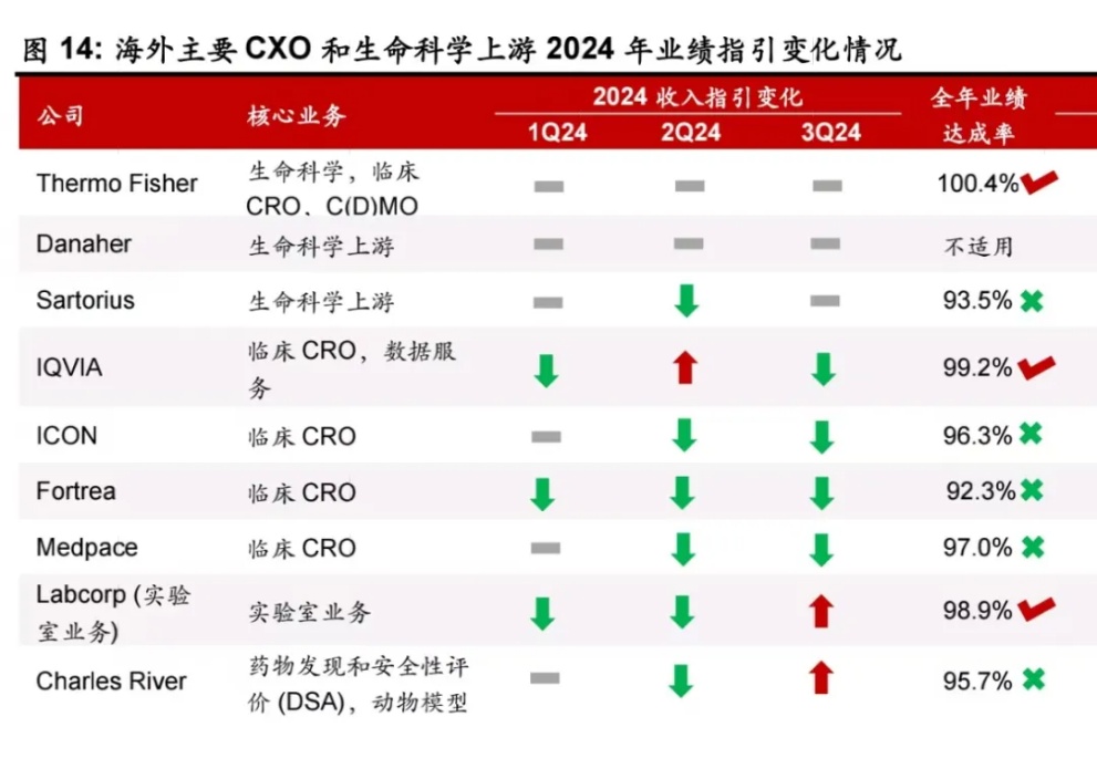 实际上,当下全球CXO行业发展环境仍充满挑战。2024年,全球多数头部CXO公司陆续下调了业绩指引,但即便如此最终达成年初业绩指引的也只是少数。