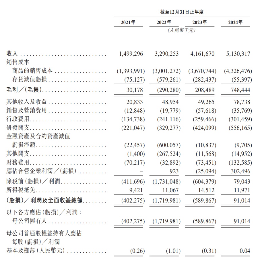 财务方面,于2021年度、2022年度、2023年度以及2024年度,正力新能收入分别约为14.99亿元、32.90亿元、41.62亿元、51.30亿元人民币;值得注意的是,于2021年度、2022年度、2023年度,公司的期内亏损总额分别约为4.02亿元、17.20亿元、5.90亿元,而2024年度,正力新能正式实现扭亏为盈,实现利润9101.4万元。