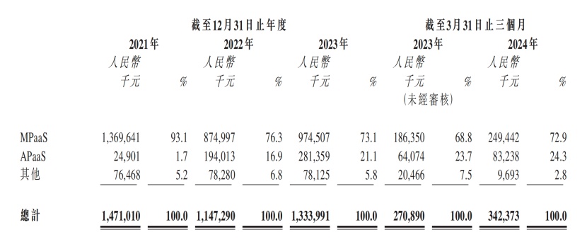 目前为止,公司从收入划分来看主要有两大产品及服务线:MPaaS和APaaS。