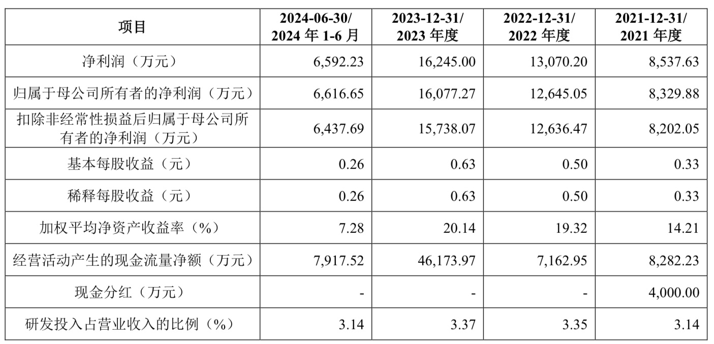 需要注意的是,招股书特别提醒投资者关注收入增速放缓或收入下降风险。2021年和2022年,发行人营业收入分别同比增长67.58%和46.13%,增长速度较快。2023年,受下游乘用车市场发生一定变化、市场新上市车型较多、竞争日趋激烈等因素影响,发行人产品应用车型的销量增长速度相对较缓,当年实现营业收入为154,430.16万元、同比增长4.50%,收入在上升的同时增幅有所放缓。若未来国内外环境发生重大变化、发行人不能与下游整车厂客户保持良好的合作关系或新客户开拓不利,无法持续获得优质新车型项目并为之开发新产品,则发行人未来存在收入增速放缓或收入下降的风险。