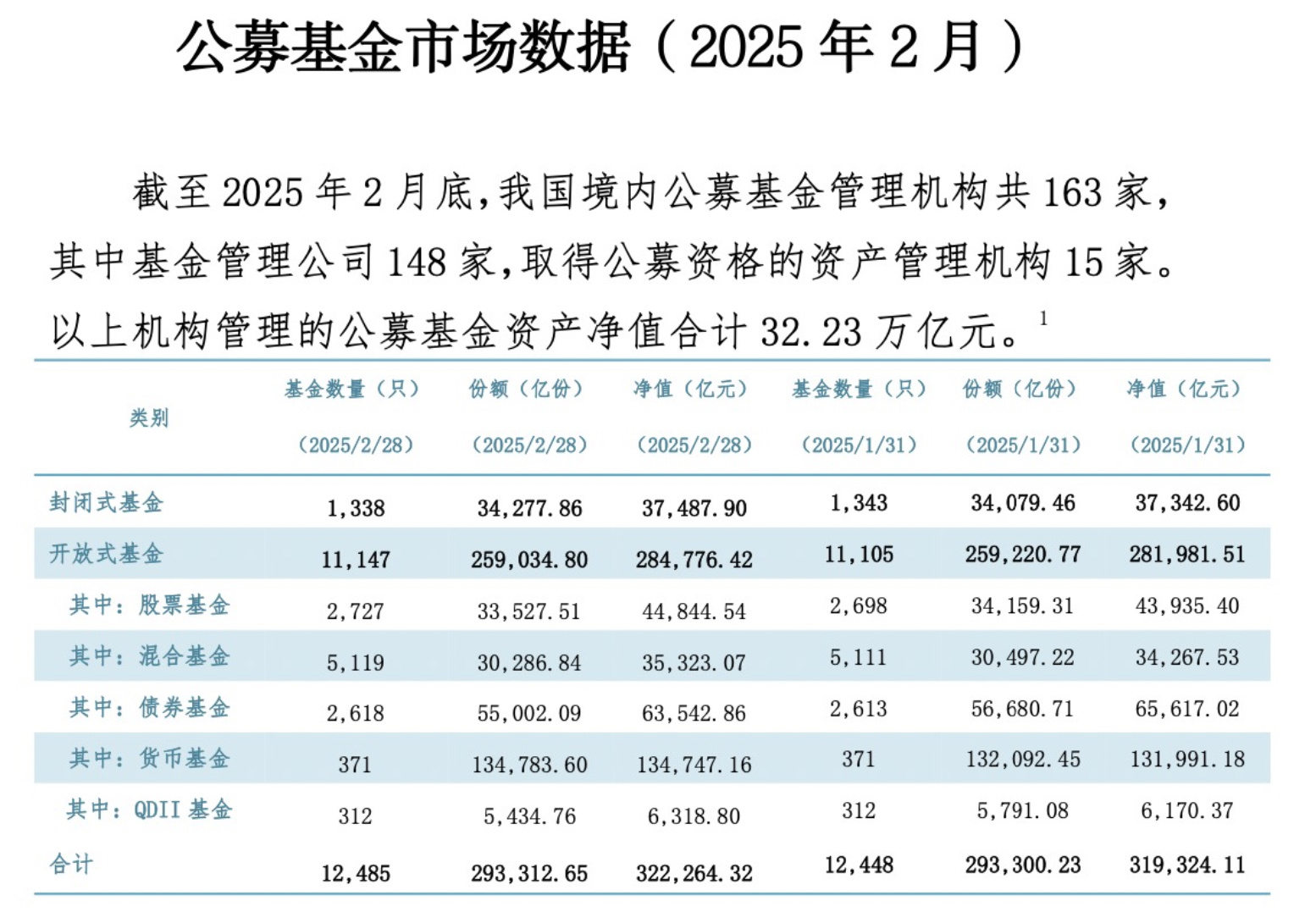 中基协最新发布的公募基金市场数据显示,2月底,我国公募基金总规模为32.23万亿元,重回32万亿元之上。