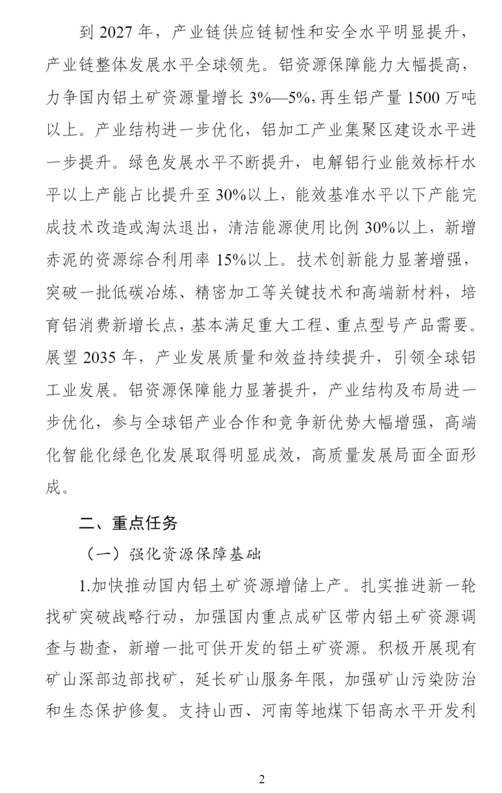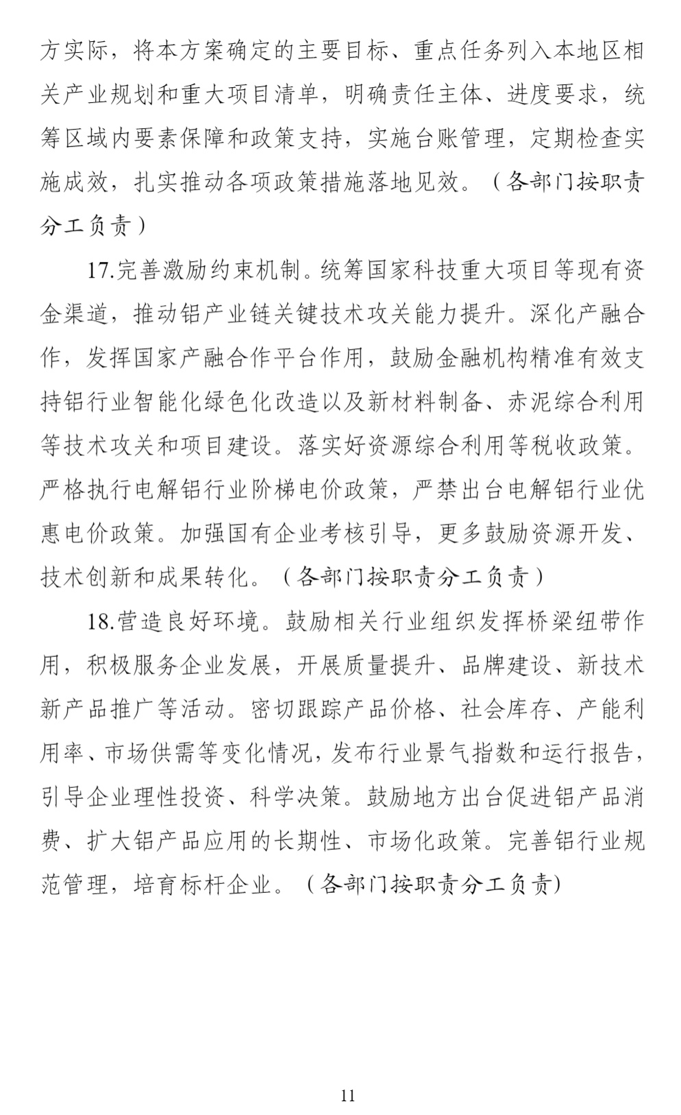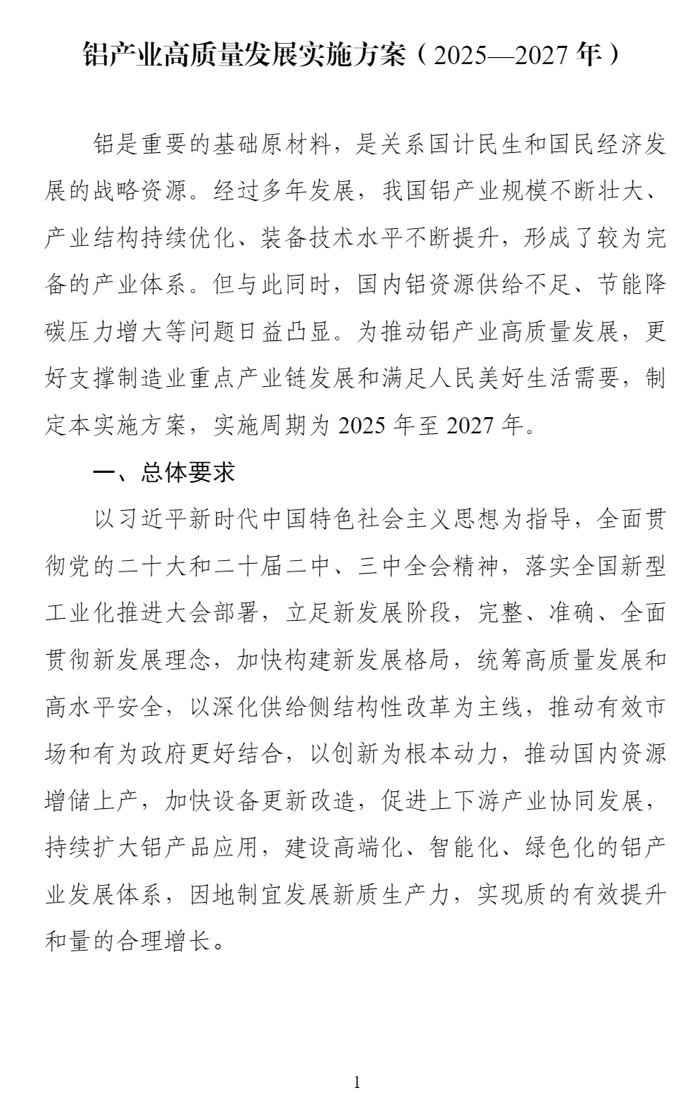 工业和信息化部等十部门关于印发《铝产业高质量发展实施方案(2025—2027年)》的通知