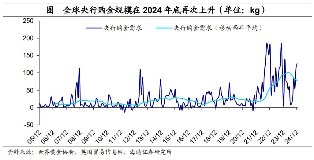 此外,还需要注意到全球央行购金行为可能并不连续,中间或有数月中断。但若市场形成了未来全球央行持续购金的预期,即便全球央行购金规模在个别月份有所下滑,黄金价格在预期影响下或仍能有所支撑。因此,我们对全球央行购金数据进行两年移动平均,以此来构建市场对全球央行购金的适应性预期。