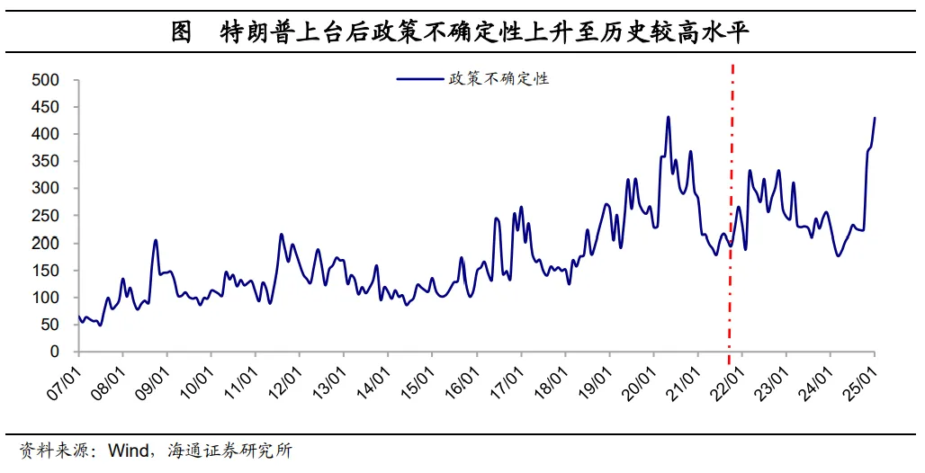 除了全球央行购金行为之外,政策不确定性对于金价的影响在2022年后也有一定程度的提升。在拓展模型中,政策不确定性与虚拟变量的交互项对黄金价格同样有显著的正向影响,或也反映出在全球百年变局下,经济、金融与贸易等秩序重构,经济政策不确定性处于历史上较高水平,使得黄金的避险属性发挥了更加重要的作用。
