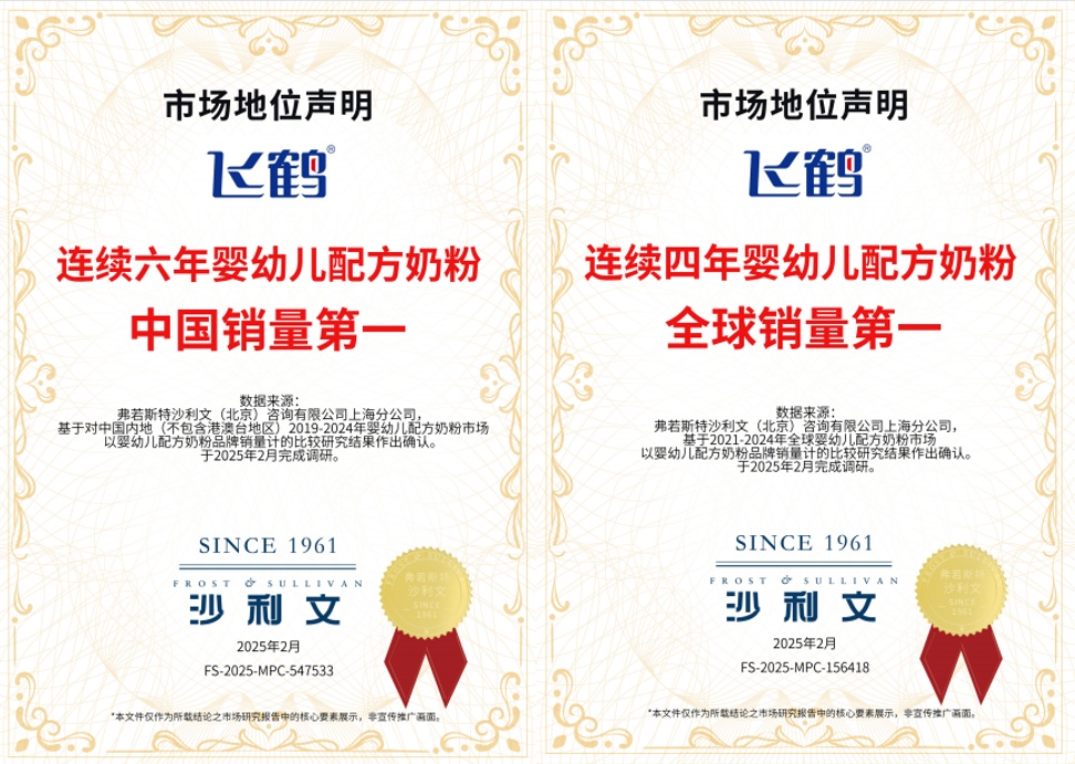 2024年,中国奶粉行业迎来结构性回暖机遇。出生率回升叠加消费者对国产奶粉信心增强及政策扶持,奶粉市场空间进一步释放。其中飞鹤市场地位稳固,据弗若斯特沙利文统计,截至2024年,飞鹤奶粉在婴幼儿配方奶粉市场连续六年中国销量第一,连续四年全球销量第一。