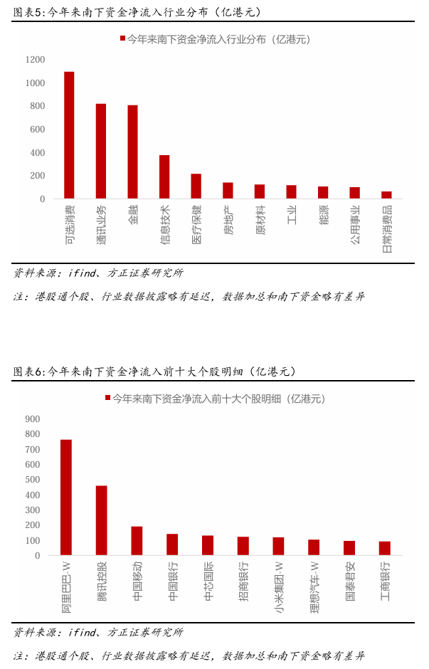 智通财经APP获悉,方正证券发表研报称,当前南下资金流入港股市场的特征相比此前有所变化,2020年之前,因为AH股存在溢价,港股市场同类资产估值偏低,对应的股息率相对更高,南下资金多流入港股市场中金融板块为主。但在近几年尤其是今年在deepseek、人工智能等产业层面催化下,南下资金流入港股市场主要加码阿里、腾讯等新兴产业龙头公司为主,不属于AH股溢价指数衡量范畴。该团队认为后续随着人工智能产业层面利好不断催化,港股市场盈利稳健、估值不贵的新兴产业龙头公司有望进一步吸引南下资金持续流入。